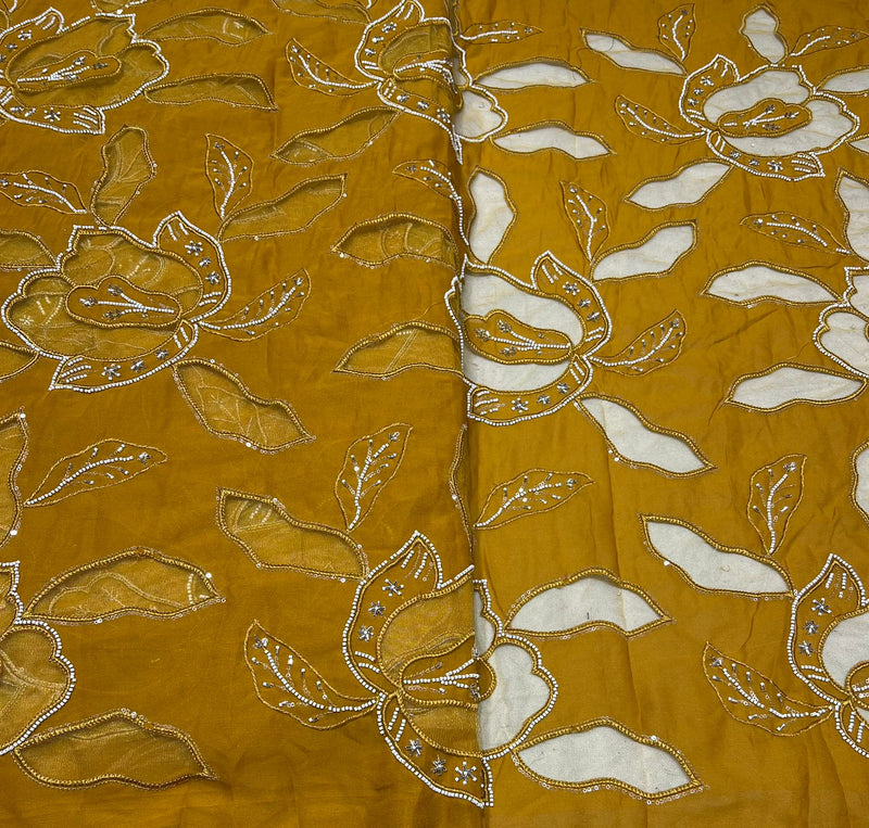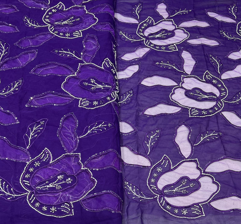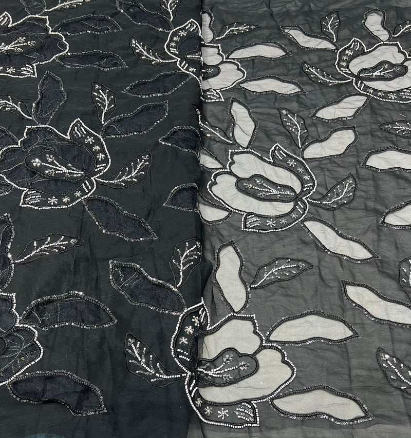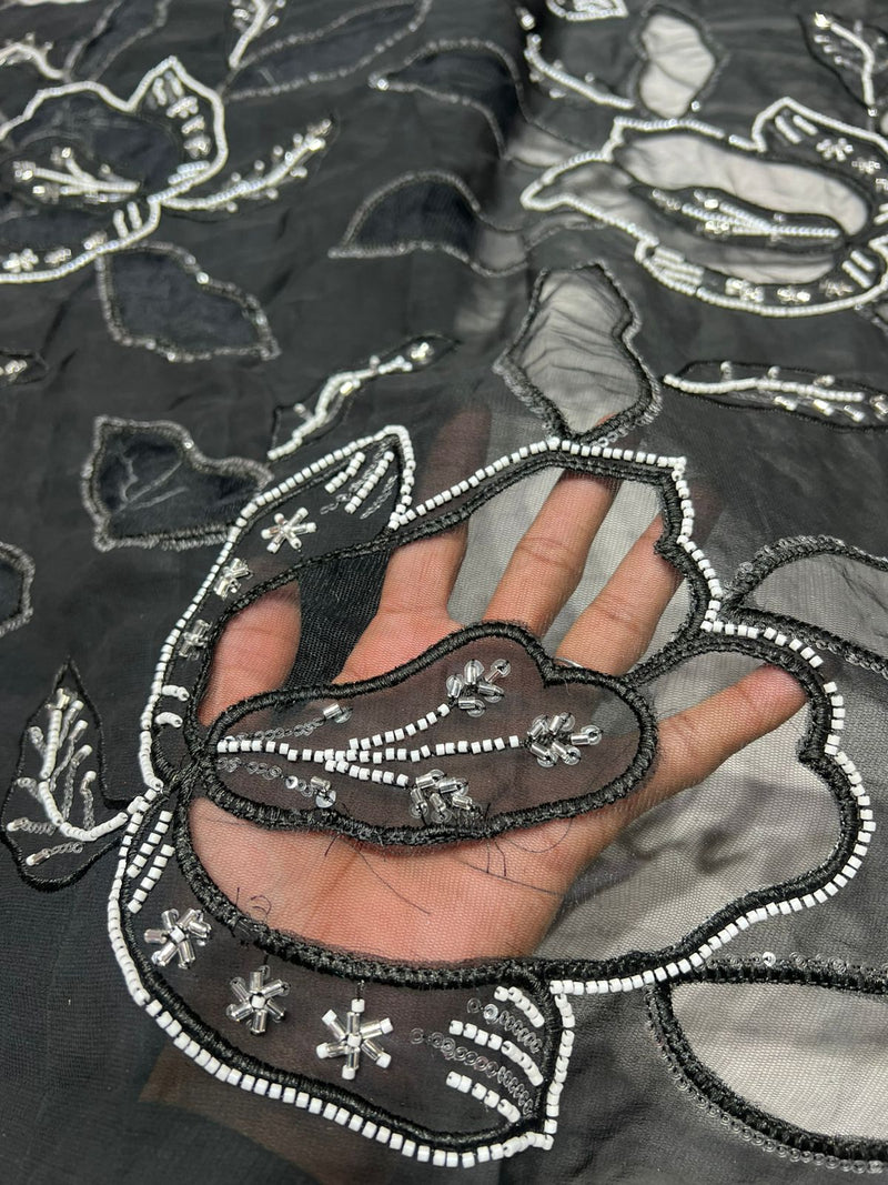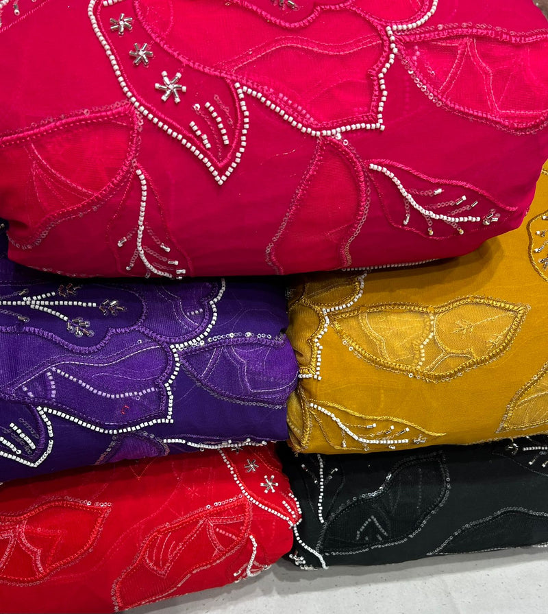 Pure georgetteAplic workCutdana position outline 44 inchesEmbroidery