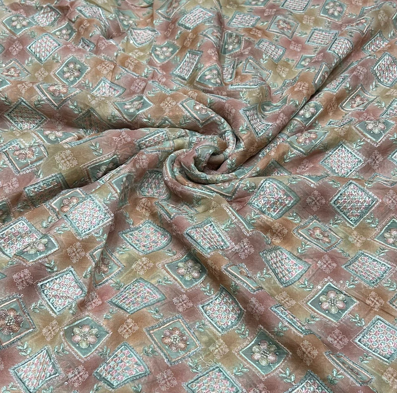 Pure orgenza position print embroidery 44 inches Price@835/- mtr