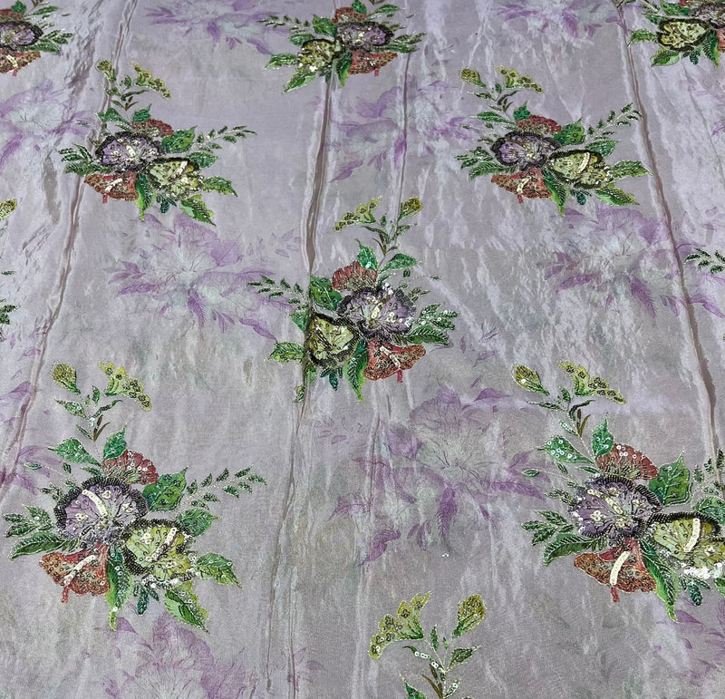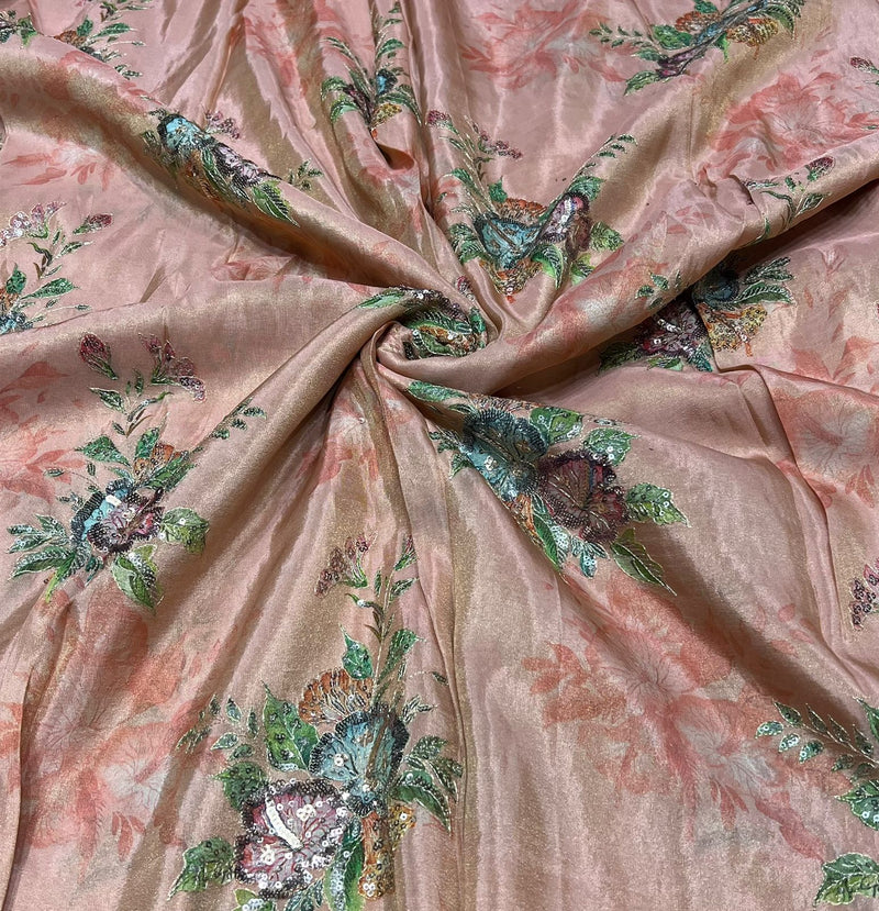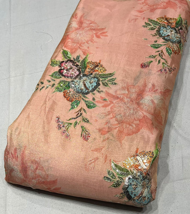 Pure tissue44 inchesNegative digital printWith position print embroidery Price@820/- mtr